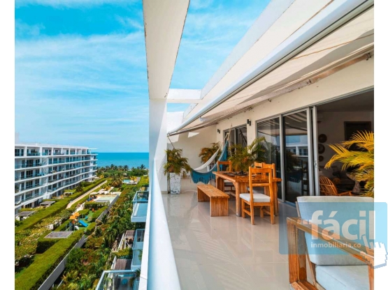 Vendemos Apartamento en zona exclusiva de Cartagena de indias, edificio Morros ECO Manzanilllo, área 116.11 m2 construidos, un garaje y deposito, son 2 habitaciones, balcón amplio, dos baños, sala comedor, cocina América, zona de oficios, zonas comunes (piscinas, jacuzzi, baño turco, gimnasio, salida a la playa privada) piso 6, se entrega amoblado y autorizado para rentas cortas (Alquiler día T alta 800 mil y en T. Baja $ 400 mil)
