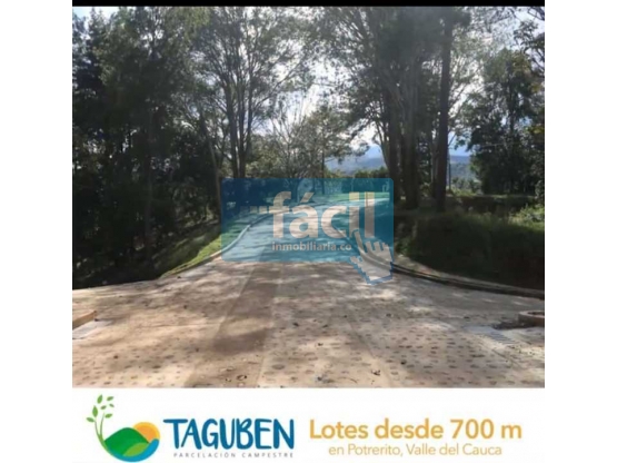 Vendemos lotes en Jamundí – Potrerito, parcelación TAGUBEN a 30 minutos de la Ciudad de Cali, Son 38 lotes, Vías pavimentadas, portería, sede social, senderos ecológicos, GYM al aire libre, luz, agua. Se entrega con escritura y certificado de tradición individual, Los lotes se separan con el 30 porciento y el resto a 12 cuotas mensuales. Lotes desde 923 m2 hasta 2.593 m2, si pagan de contado obtendras un descuento.Quedan pocos lotes de los 36 iniciales.